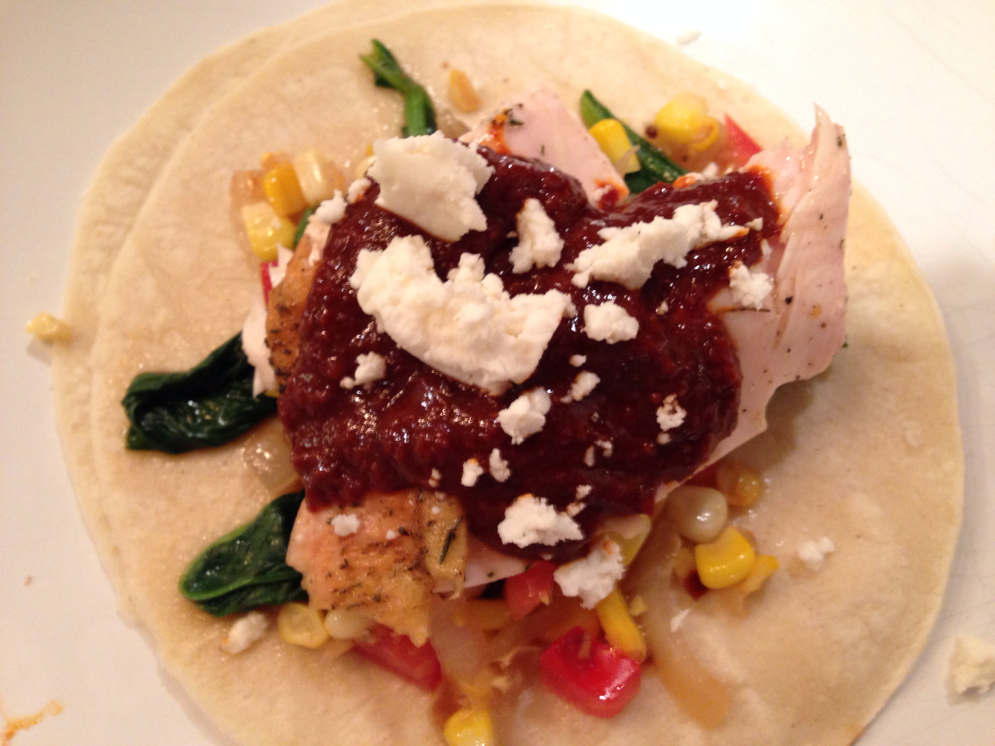 One thought on “Roasted Chicken with Wilted Spinach, Corn Hash, and Ancho and Guajillo Chile Sauce/Salsa