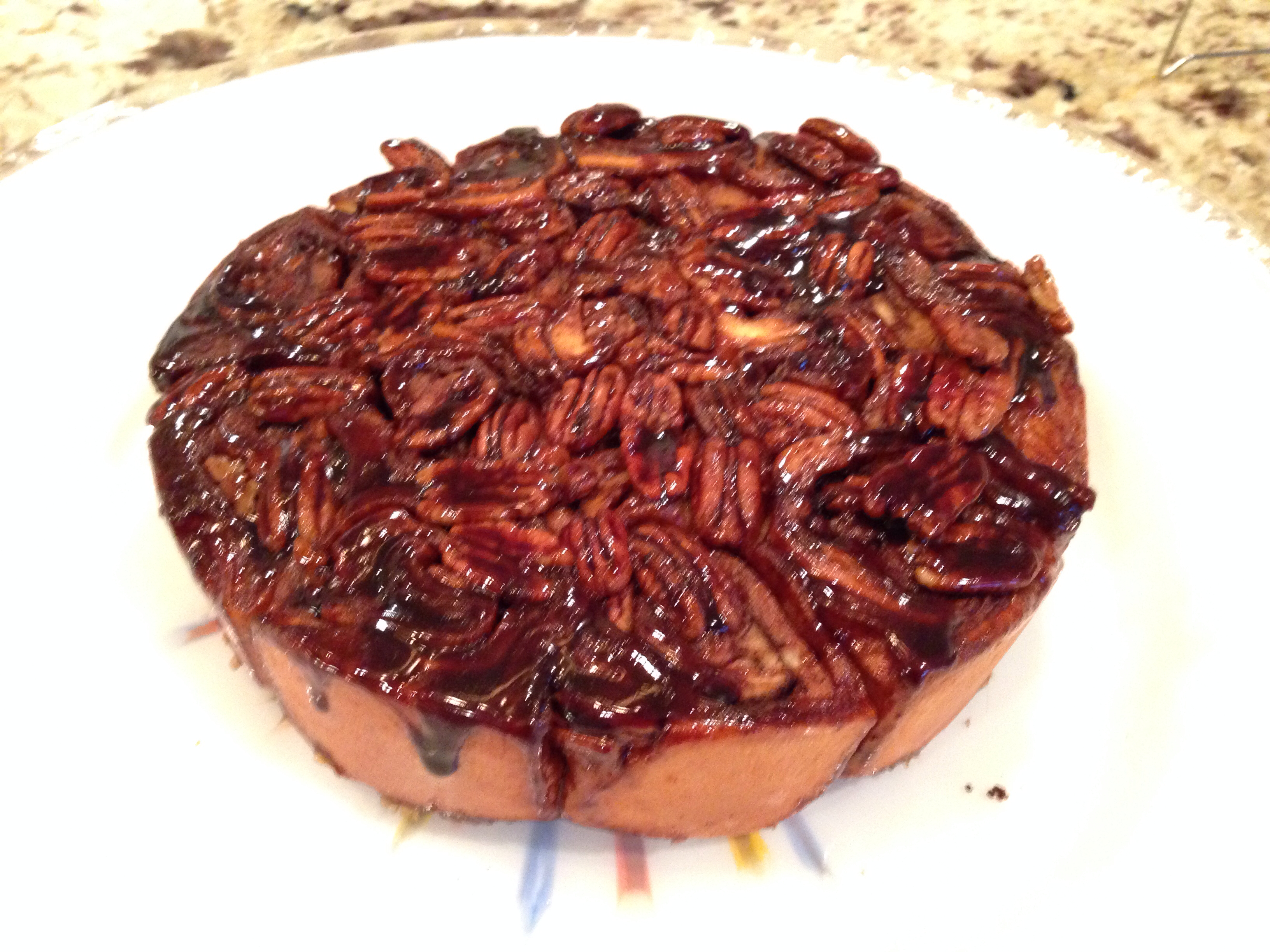- Take out of oven and gather a large plate or platter. Invert pan onto plate/platter so that the contents on the bottom of the pan are now facing up. Remove pan slowly and cross your fingers that everything remains in tact!