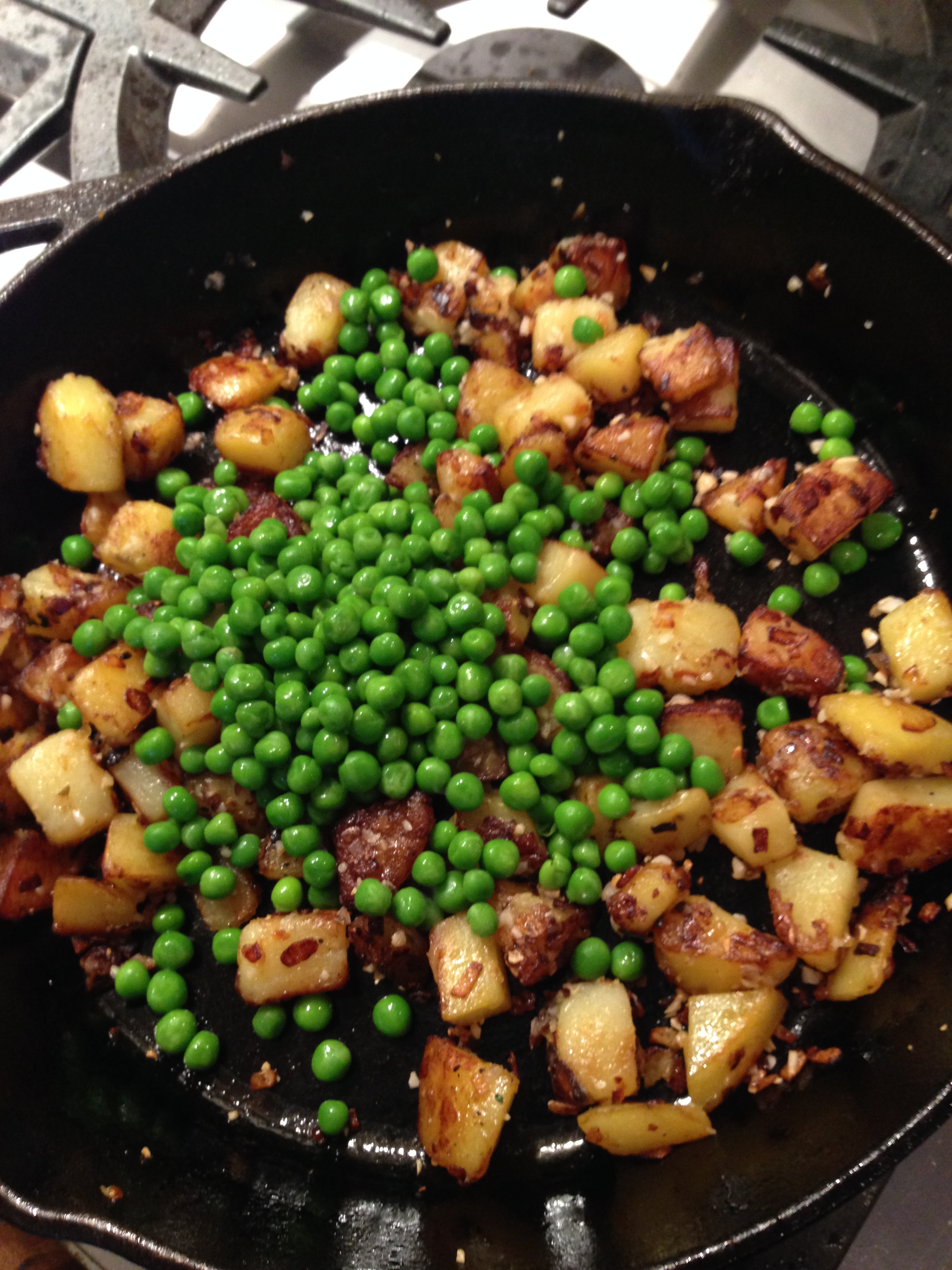 Crispy Pan Potatoes with Peas, Onion, and Garlic