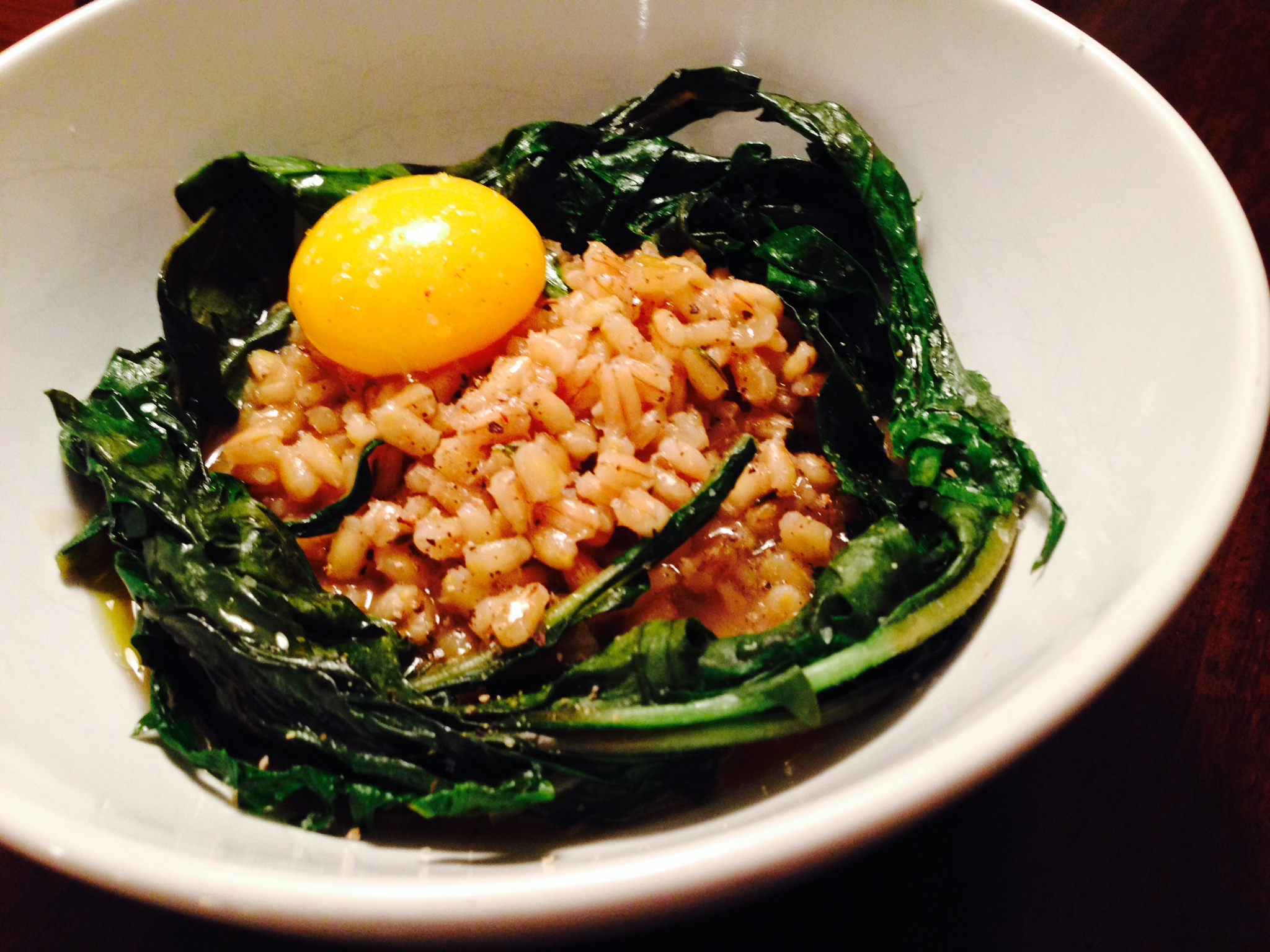 This is a great anytime meal. By that, I mean you can make this year round, using whatever fresh greens you have on hand. I received some local dandelion greens and paired them with the earthy, almost sweet taste of the pearl barley. The bitterness of the greens is tempered a bit by the creaminess of both the egg yolk and the natural creaminess you achieve by cooking grains in the risotto style. Risotto is not difficult at all but it is time intensive. It requires a lot of attention as frequent stirring is a must. It also takes about 45 minutes to an hour to make. So, this is a slow cooking meal made with care. If you’ve never tried pearl barley but you enjoy risotto, this is a great entry point for you. If you’ve tried pearly barley and enjoy both the taste and the health benefits, this is a great little recipe to add to your barley repertoire.