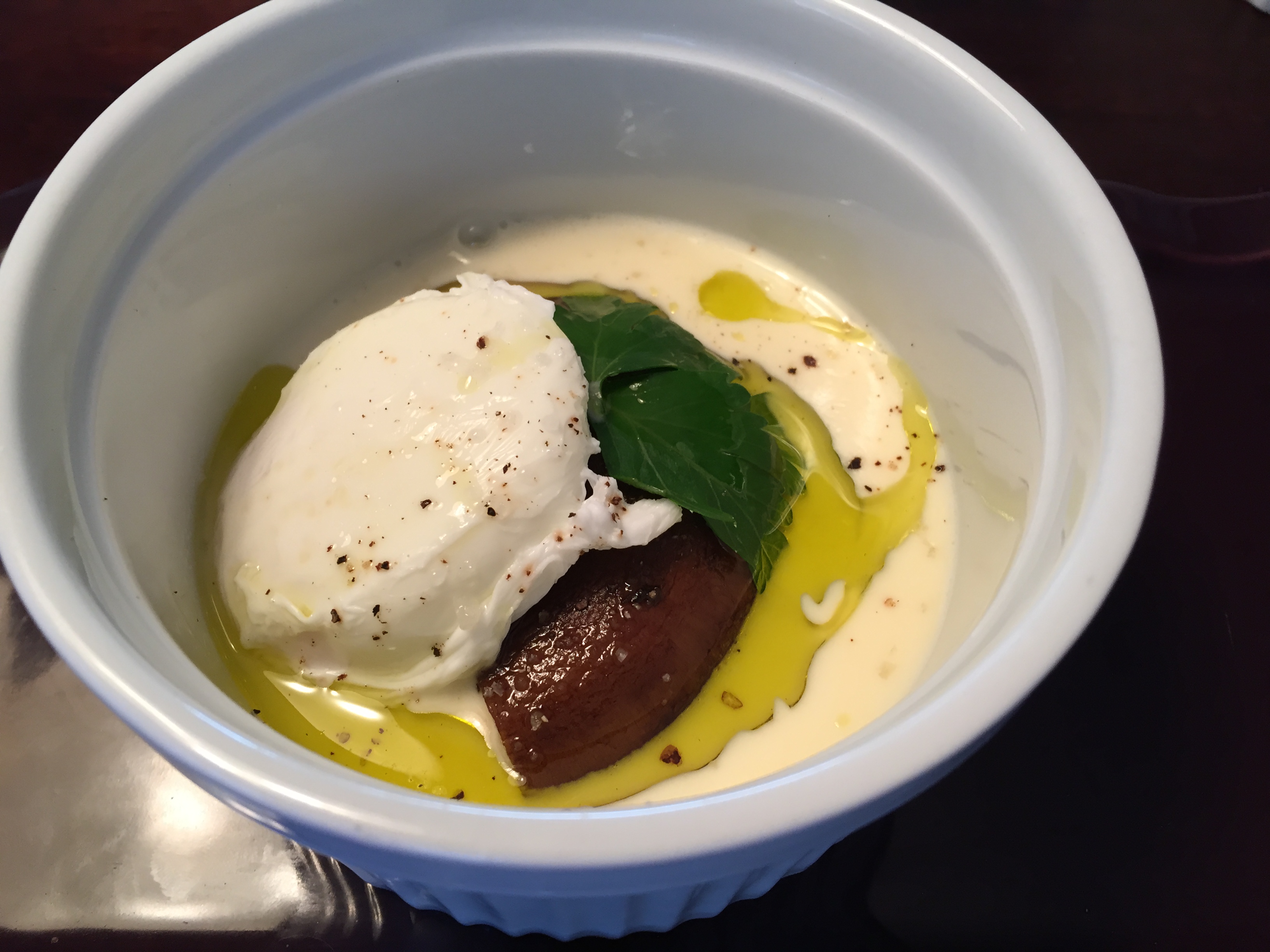 On a recent trip to Florence my wife and I stumbled across a wine shop that also served pretty extraordinary food. One of the dishes they started with was a roasted porcini mushroom with a poached egg both served atop a bit of soft pecorino cheese that had been melted with a touch of cream into almost a fondue-like texture. It seemed to me to be possibly the most quintessential Italian dish my wife and I enjoyed in Italy…and we ate a lot at a lot of different restaurants, trying the local fare on a variety of levels. Anyway, this dish is simple and elegant, using local, seasonal ingredients, and taking those simple ingredients and making them way greater than the sum of their individual parts. I tried several times to recreate this dish at home and this recipe represents the best results I’ve achieved thus far. I use Portobello mushrooms as we do not really have access to fresh porcinis in New Jersey (as far as I know) but you can certainly adapt the recipe to use whichever mushroom you like. However, I would stay away from dried mushrooms and stick with a fresh variety. As a bonus, just as our waiter told us, you can adapt this dish to whatever is in season. We were there during porcini season. They serve the same dish using asparagus, artichokes, etc…whatever is freshest and tastes best at that particular moment during the year. I love it! So, I hope you enjoy this dish as much as we did.