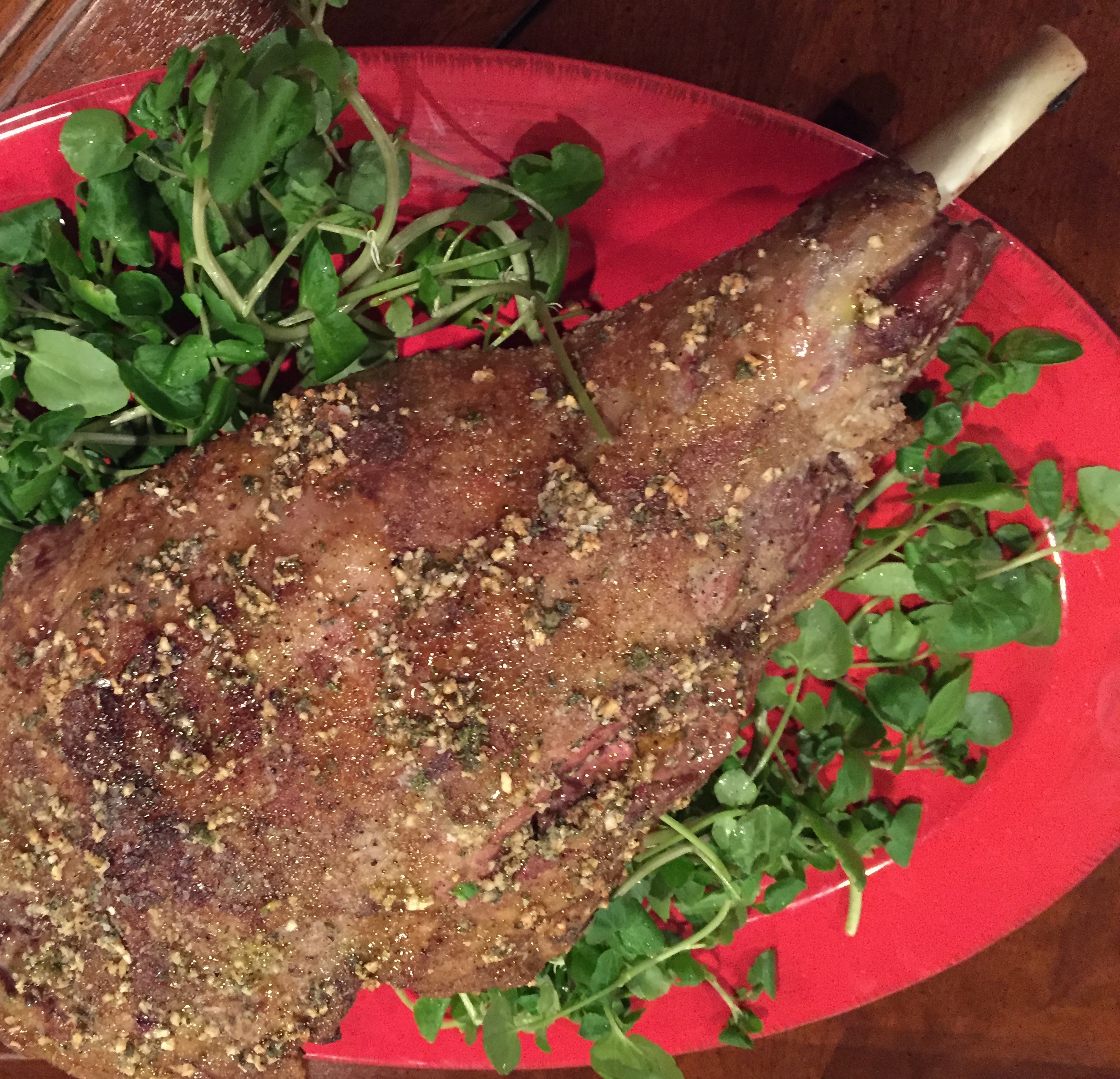 I don’t absolutely love lamb so I don’t make it very often. However, Tara really loves it and when my parents visited last weekend, they requested that I make a lamb dish. So, I opted for roasting a leg of lamb. It feeds a crowd and is pretty forgiving. The other bonus is that it produces slices of meat with varying levels of doneness so if you enjoy rare meat, it’s there. Likewise, if you prefer your lamb on the medium or medium rare side, the leg provides slices at that temperature too. I think a lot of people might get a bit intimidated with the leg of lamb because of both the size of the meat as well as the perceived time it takes to cook. The good news here is that it really doesn’t take longer than a traditional roast pork or beef. I started it at a very high oven temperature and allowed it to cook for about 20 minutes and then lowered the temperature, removed it from the oven, and rubbed it all over with the garlic and herbs before returning it to the oven at a much lower temperature to finish cooking for about an hour. As it turns out, everyone (myself included) really liked the lamb so I will definitely make it again at some point in the near future.